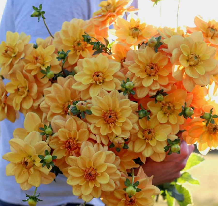 Warm rust-orange blooms with rich, earthy undertones that deepen as the season progresses. This variety brings a strong autumn feel to the garden and pairs especially well with creams, blushes, and deeper wine tones in bouquets. Productive with good stem length, making it a useful cut flower when warm colours are needed later in the season.